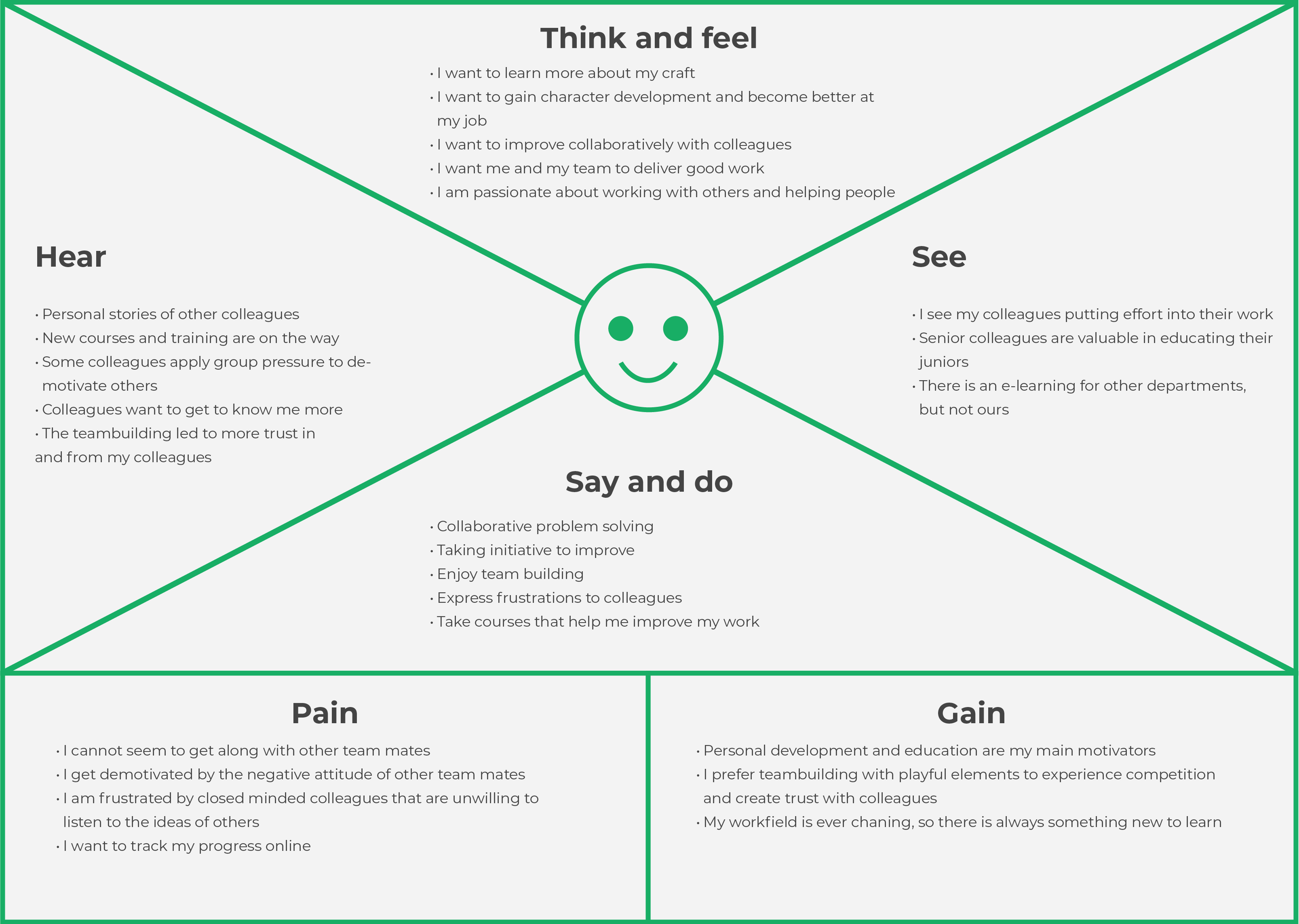 The interviews conclusions were processed into the empathy map, alongside user feedback.