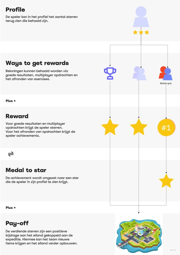 The two concepts would be combined after gaining a deeper understanding of the mechanics necessary to create a meaningful cooperative gamified environment. The concept made was very simple and low fidelity to test with the client, co-workers and the end-users. The test was intended to observe cooperative behavior and to test multiple storytelling- and game mechanics.