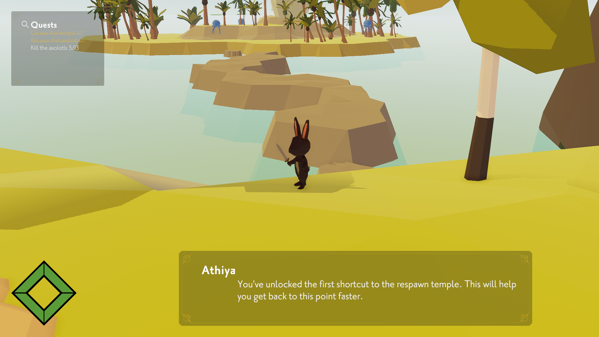 Another notable detail is Lago’s healthbar. It is diamond shaped for a reason. Lago is helped by owl-goddess Athiya, based on Athena. Greek mythology cites the diamond shape to be a symbol for Athena and would also be used in the shrines were Lago can heal and save, Shown in the most right picture.